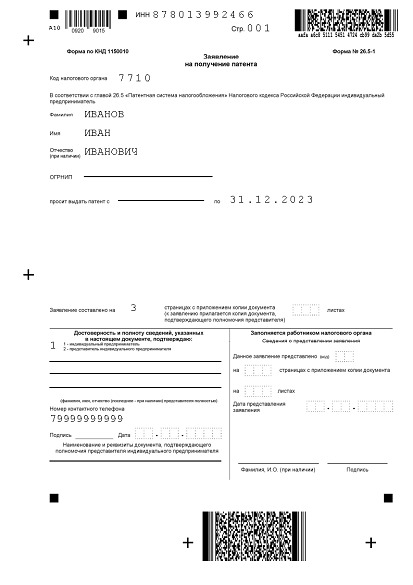 Если текущий патент действует до 31 декабря 2025 года, в новом заявлении указывается период с 1 января по 31 декабря 2026 года. Такой подход обеспечивает непрерывность применения патентной системы без разрывов.